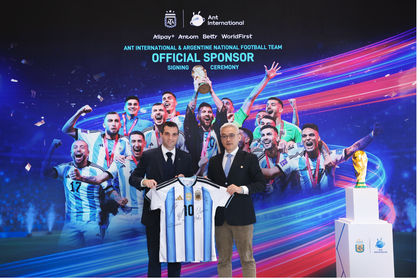 Perjanjian ini menyatukan juara semasa Piala Dunia FIFA dengan salah satu penyedia teknologi kewangan paling inovatif di dunia. Melalui kerjasama ini, Ant International memperoleh hak pemasaran menyeluruh untuk melaksanakan aktivasi strategik merentasi portfolio jenamanya, termasuk Alipay+, Antom, Bettr dan WorldFirst, dengan memanfaatkan harta intelek AFA serta pemain bertaraf dunia Pasukan Kebangsaan Argentina.